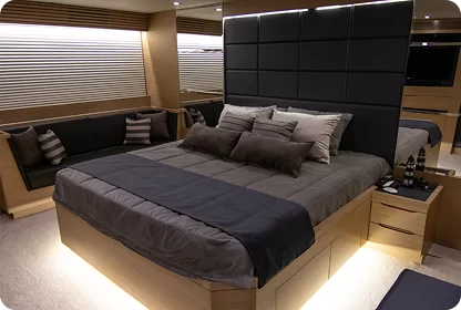 A spacious luxury yacht designed for strong presence, smooth cruising, and refined onboard living.