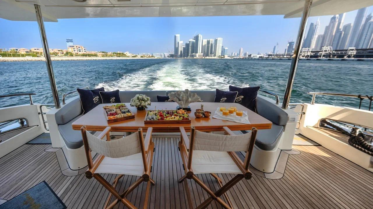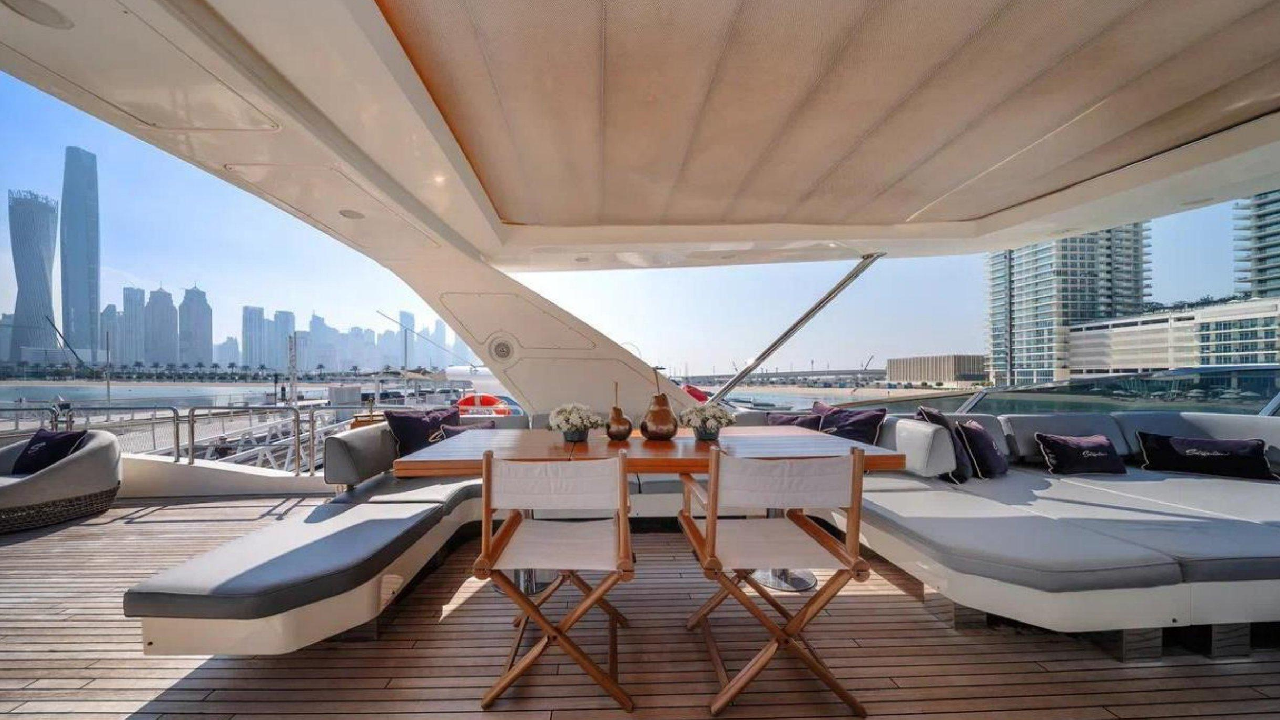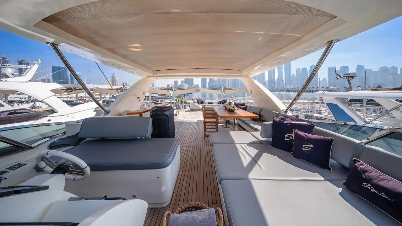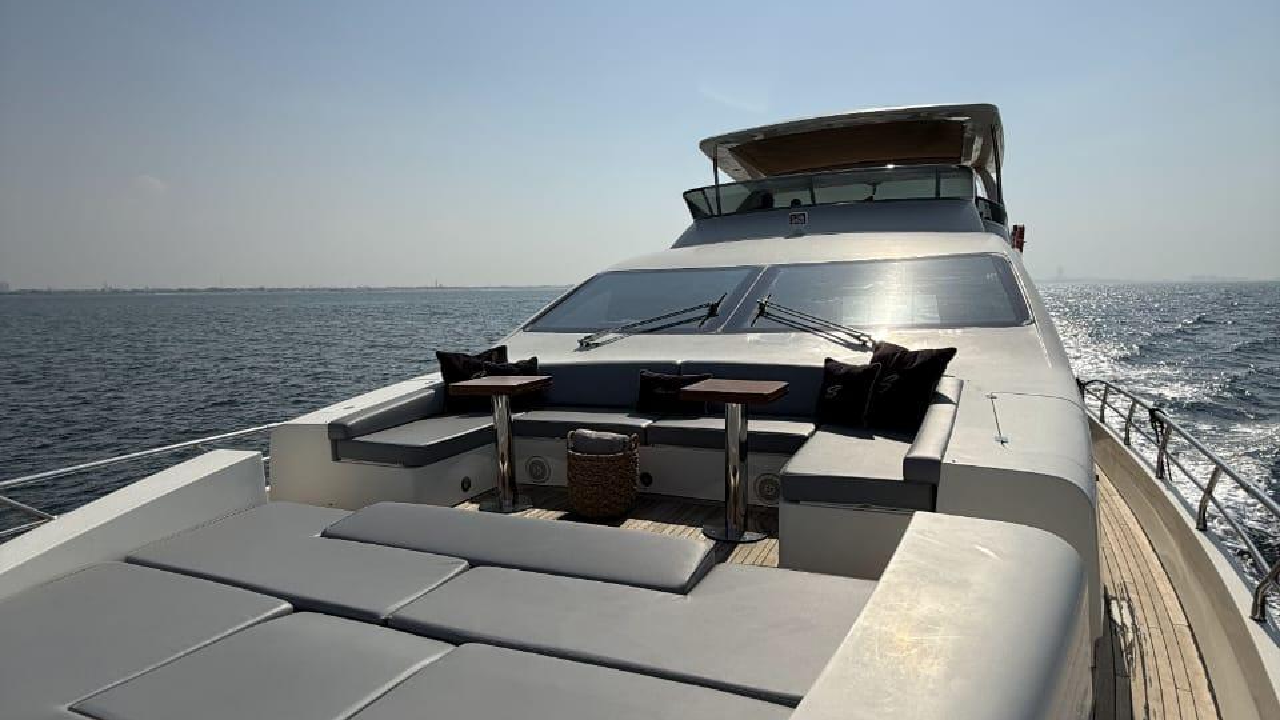 Azimut 88 is a luxurious and elegantly designed yacht, offering a spacious layout and premium comfort for charters in Dubai. With large outdoor lounging areas, a stylish flybridge, and beautifully appointed interior lounges, the yacht provides an ideal setting for relaxing, dining, and hosting gatherings. It accommodates up to 30 guests for day charters and 9 guests overnight, making it perfect for celebrations, corporate events, and family cruising. Featuring refined interiors, comfortable cabins, and expansive sunbathing spaces, the Azimut 88 delivers a smooth, enjoyable, and truly upscale yachting experience along Dubai’s coastline.