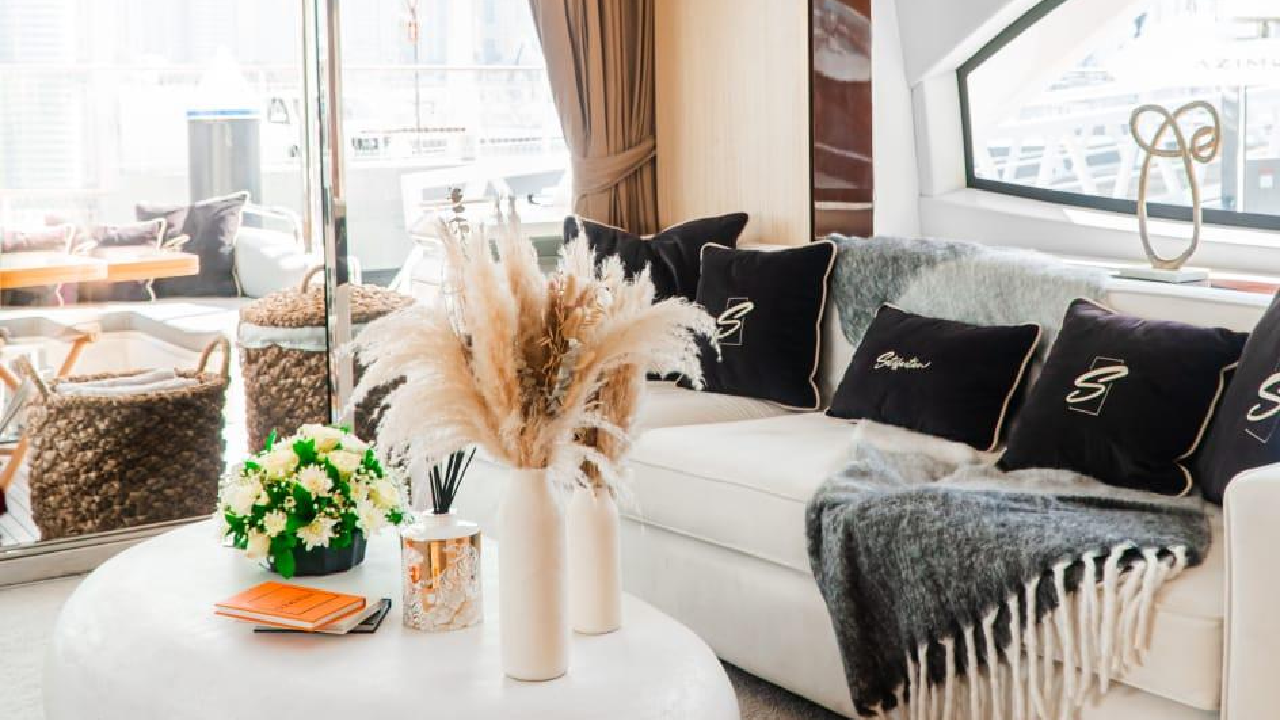 - Spacious main saloon with premium sofas and centre table