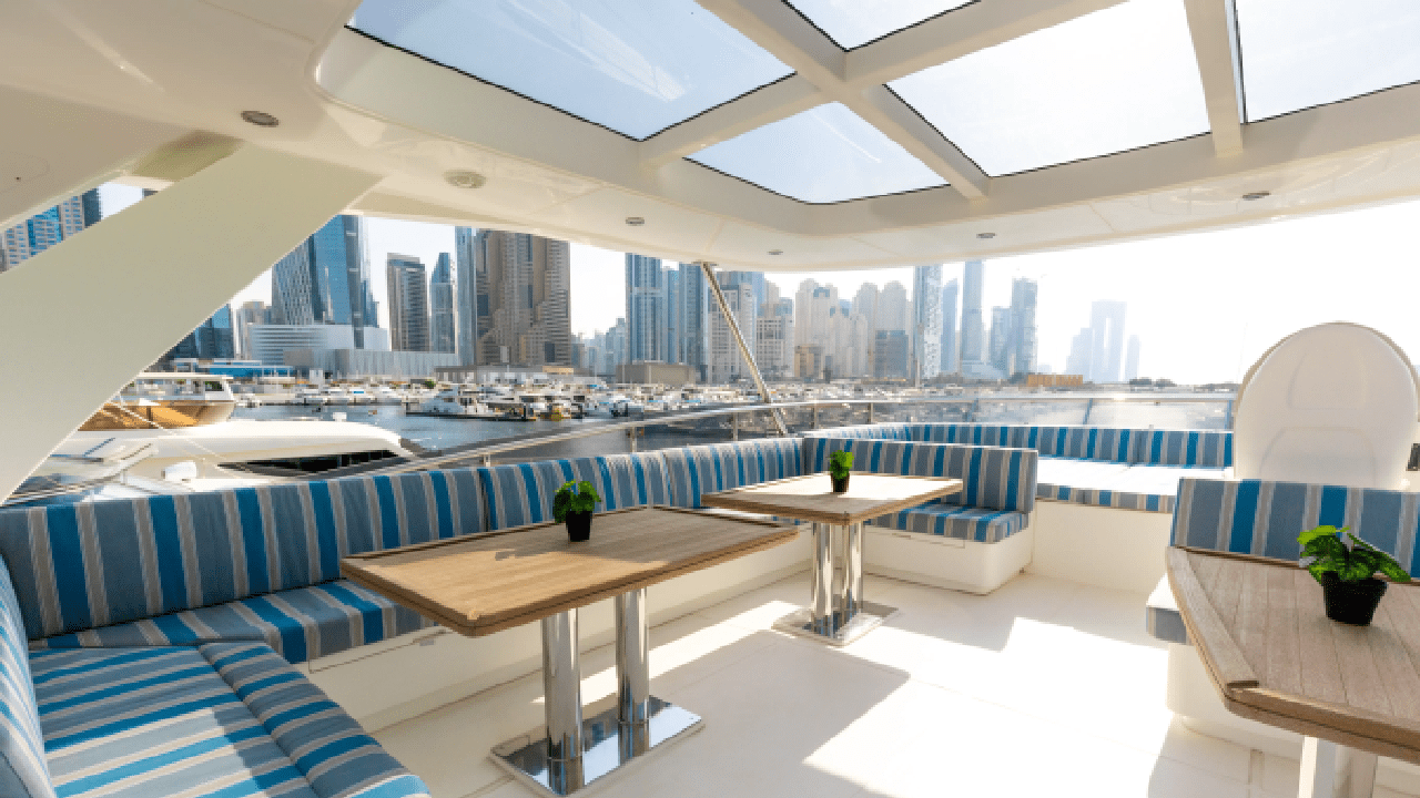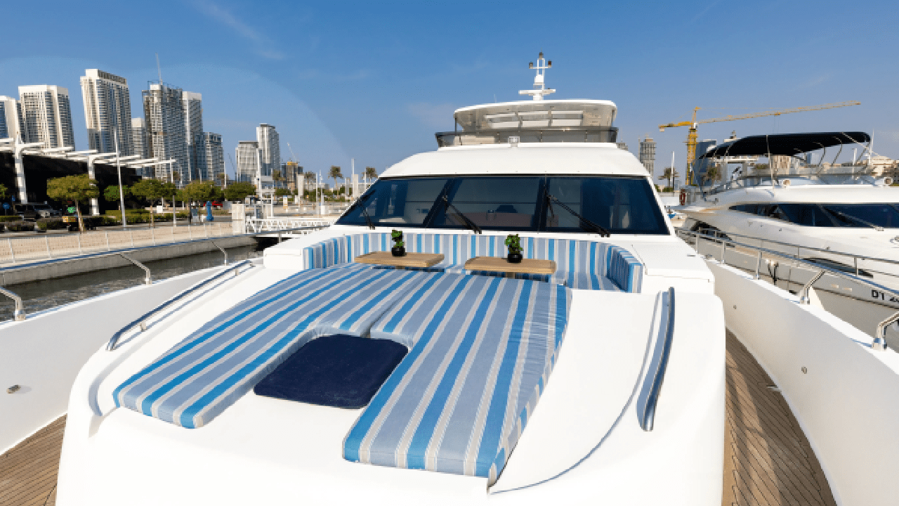 Caliente 96FT is a beautifully designed luxury yacht offering a spacious, elegant, and modern charter experience in Dubai. With expansive lounges, bright interiors, and generous outdoor seating areas, it provides the perfect setting for celebrations, corporate events, and relaxing cruises. The yacht features multiple stylish lounges, a wide flybridge with panoramic views, and premium cabins that accommodate up to 6 overnight guests. With a day capacity of 55 guests, Caliente 96FT blends comfort, sophistication, and open-air freedom—delivering an unforgettable luxury journey along Dubai’s coastline.