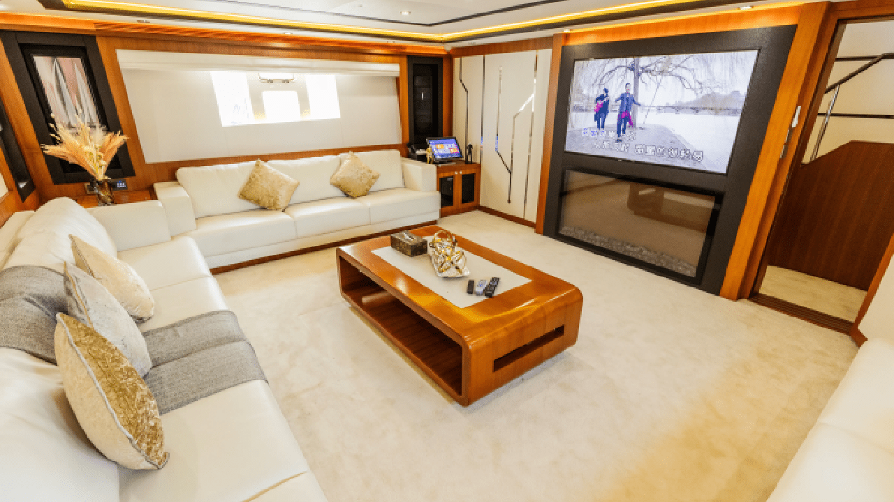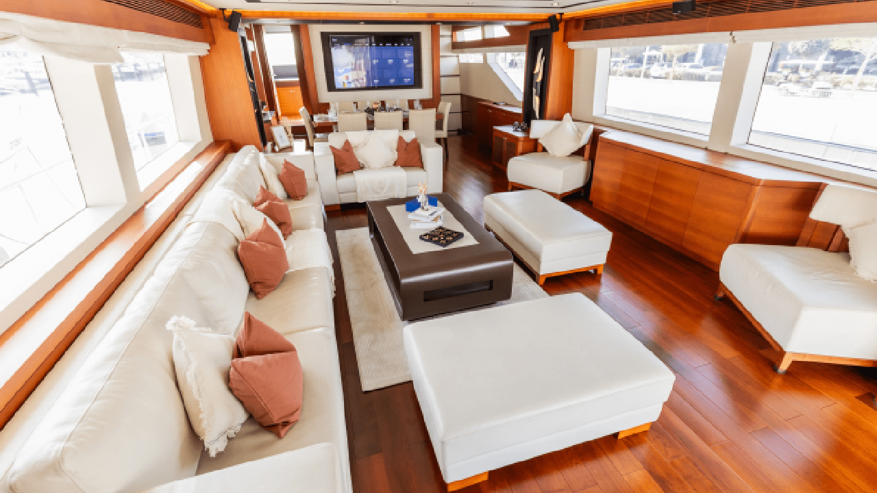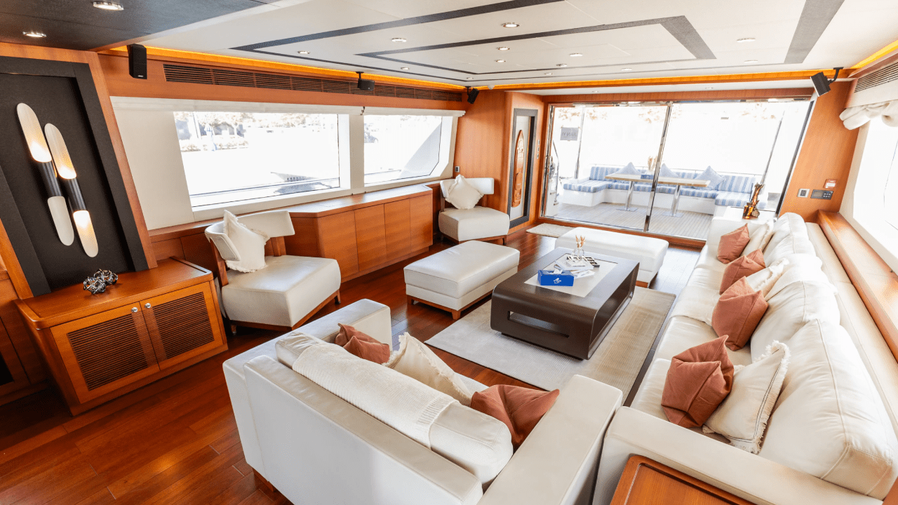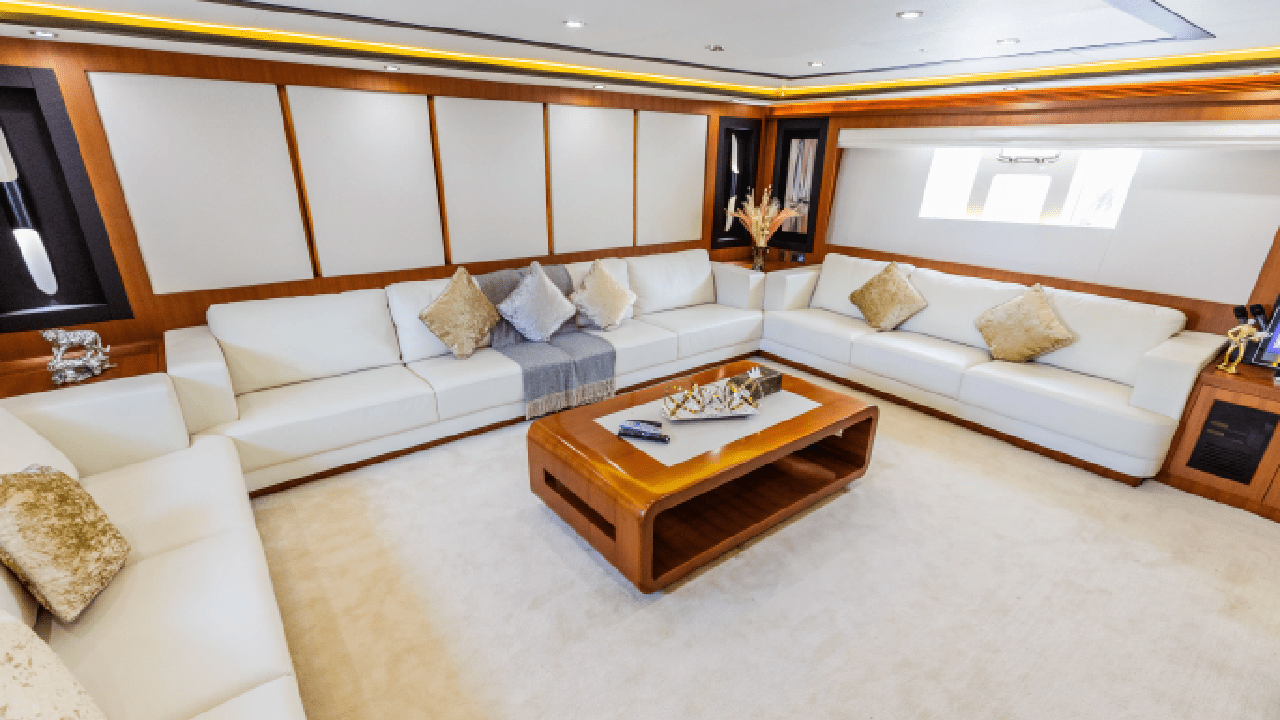 - Spacious main saloon with premium sofas and centre table