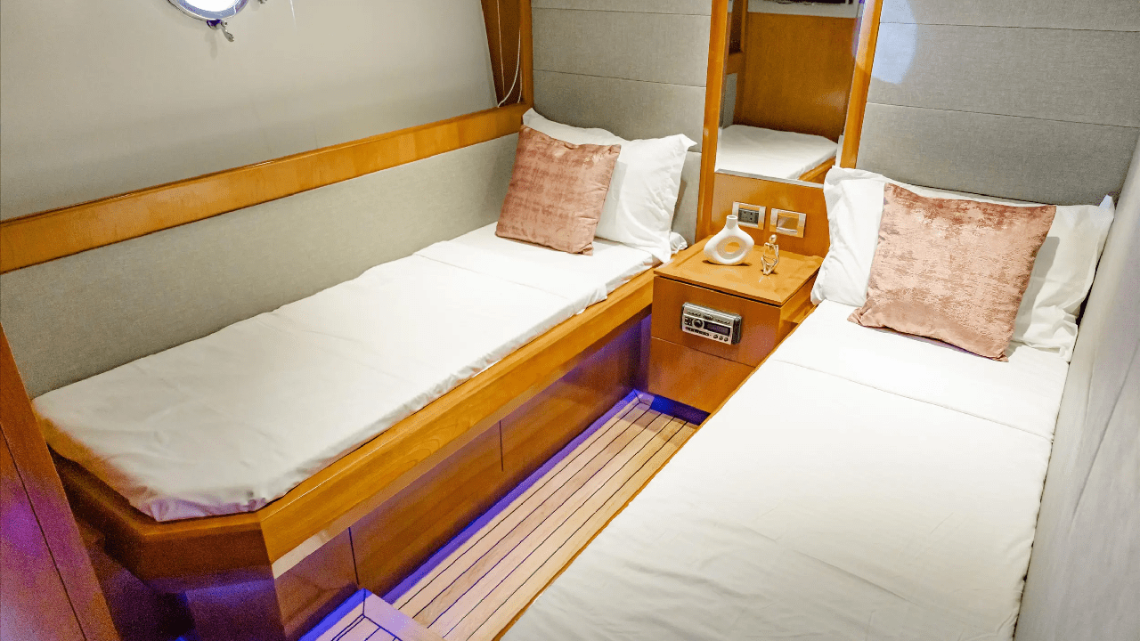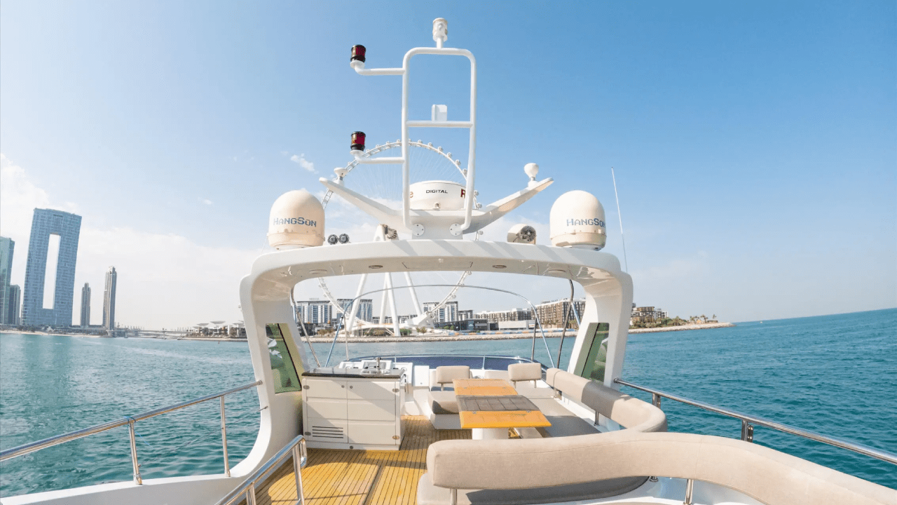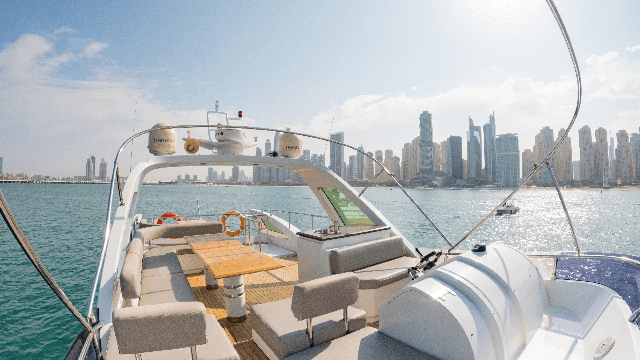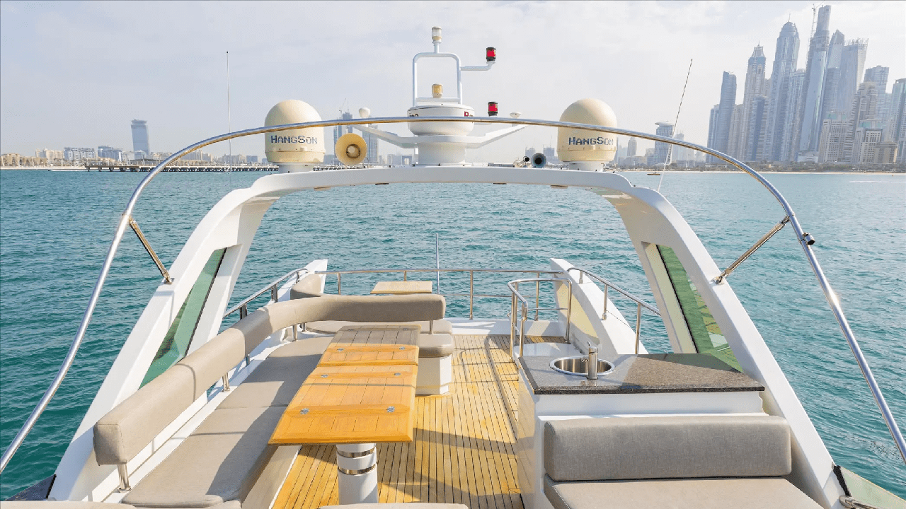 LANA is a 62ft Azimut yacht offering a stylish and modern charter experience from Dubai Harbour. With spacious lounge areas, an elegant flybridge, and a beautifully finished interior, it provides the perfect setting for relaxed cruising, small celebrations, and luxury getaways. Designed for comfort and convenience, LANA accommodates up to 20 guests during the day and offers two cozy cabins for overnight stays. With its refined layout, smooth performance, and premium build, this yacht delivers an enjoyable and memorable experience along Dubai’s coastline.