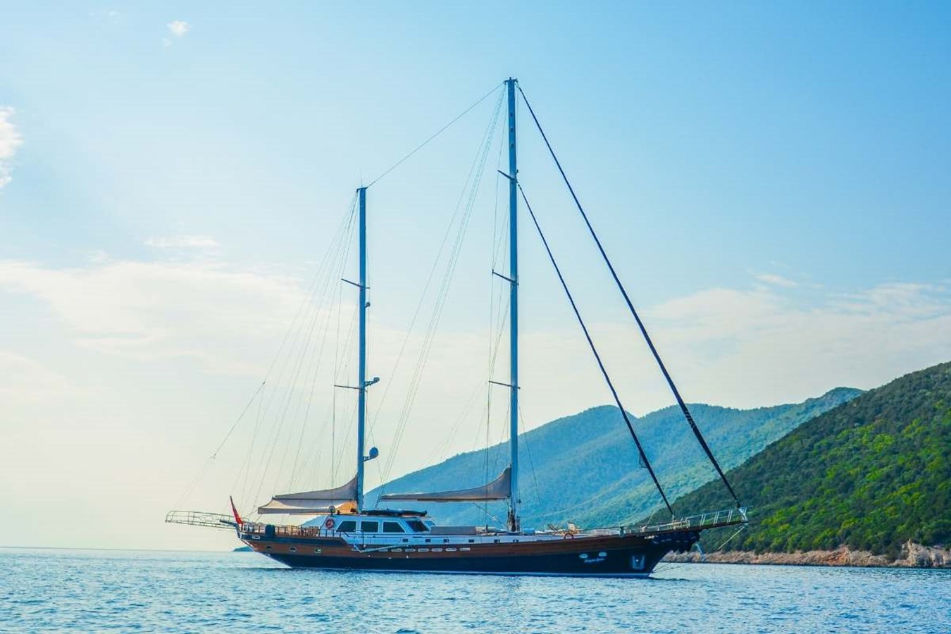 This 34-meter steel gulet , built in 2007, is in very good, well-maintained condition . She offers 5 guest cabins , a spacious interior with generous volumes , and wide deck areas that are comfortable and functional. Her exterior has well-balanced proportions , while the interior benefits from a layout that feels open and airy.